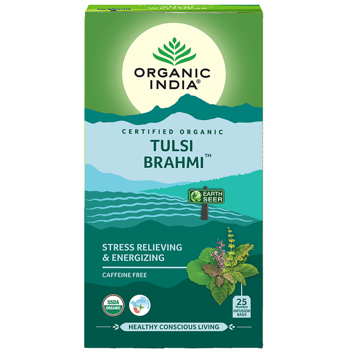 Organic India Tulsi Brahmi Tea Organic India Tulsi Brahmi Tea is enriched with the goodness of Brahmi and Tulsi which are known to boost memory and intelligence level. It is also a stress-relieving formula. Moreover, it helps to improve the immune strength of the body.