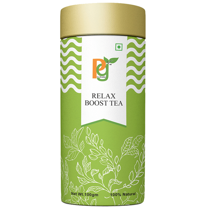 PG Relax Boost Tea has key ingredients that lead to a state of physical and mental relaxation, helps in reducing stress, improves the quality of sleep, diminishes the symptoms of premenstrual syndrome, heightens mental activity and reduces the negative side-effects of caffeine. Chamomile Flowers in this tea relaxes nerves and soothes the nervous system, therefore, helps to sleep better. PG Relax Tea lacks the addition of caffeine and is best consumed before sleeping. | Key Ingredients: Green Tea Chamomile Lavender Lemongrass | Key Benefits: It fights with harmful bacteria and has the ability to boost the immune system Relax tea helps to relax nerves and soothes the nervous system, therefore helping the person sleep better Relax Tea improves mood disorders and helps to handle anxiety, depression and fatigue, due to the presence of aromatherapy agent Relax Tea is helpful in various gastrointestinal disturbances including flatulence, indigestion, diarrhoea, anorexia, motion sickness, nausea and vomiting Relax tea is packed with ingredients that are loaded with antioxidants which help to boost the skin health, lightens the complexion and gives a glow | Directions For Use: Take 1 tsp of tea leaves and place them in a teapot Add 180ml of boiling water at 80-90 degree Celsius Let the tea infuse for 2-3 minutes Strain the brew in mugs and serve hot | Safety Information: Read the label carefully before use Keep out of reach of the children Store in a cool dry place