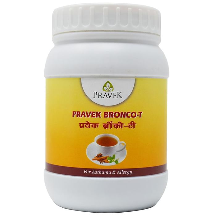 Pravek Bronco-T is a special decoction that provides relief to throat and lungs by treating respiratory concerns. It is useful in bronchitis, asthma and sinusitus. It helps in treating acute as well as chronic upper respiratory tract infections and even general respiratory concerns such as the common cold and cough. | Key Ingredients: Haldi Tulsi Pippali Siris Mulethi | Key Benefits: Provides relief from common cold and cough Useful in treating Bronchial Asthma, Allergic Bronchitis, Sinusitis, Acute and Chronic Upper Respiratory Tract Infections It helps relieve nasal congestion | Directions For Use: Boil 3g Pravek Bronco-T in approx. 1 cup water for 2-3 minutes. Milk and sugar can be added according to taste. Take thrice in a day or as directed by the physician. | Safety Information: Soothing sips can be very effective To be taken under medical supervision Read the label carefully before use Store in a cool dry place away from direct sunlight Keep out of reach of the children
