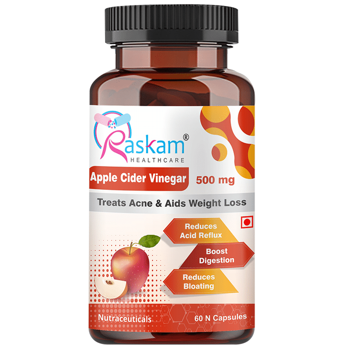 Raskam Healthcare Apple Cider Vinegar 500mg Capsule Raskam Healthcare Apple Cider Vinegar Capsule is a dietary supplement that can help to improve gut health. It can cleanse the body of toxins, promotes good blood circulation and helps improve digestion. It is a powerful antioxidant that may boost metabolism and energy levels. It can be consumed to improve general health and well-being. It also improves heart health and can help reduce itch and belly fat.