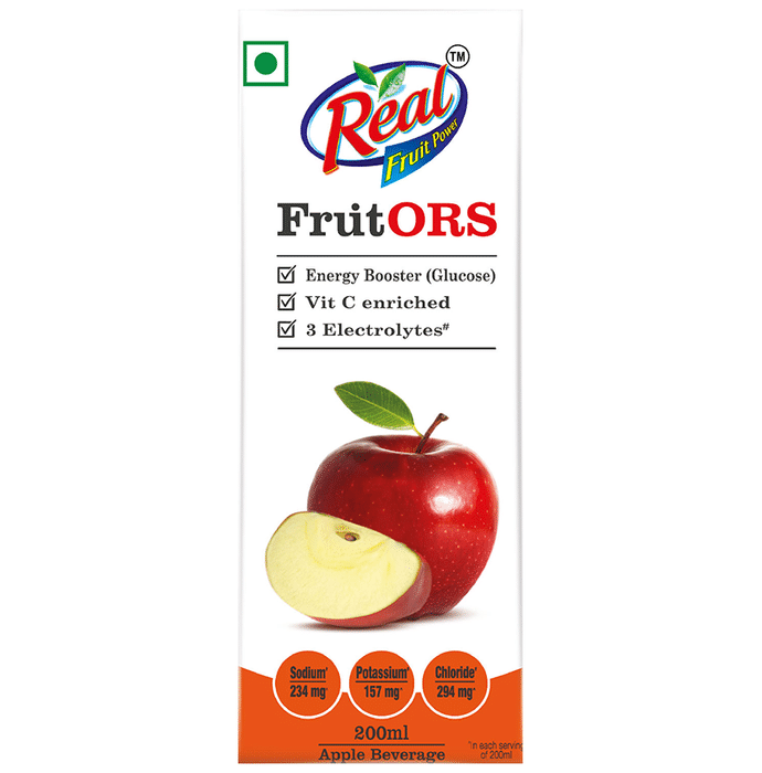 Real Fruit ORS Orange is a low-calorie electrolyte drink, constituting of vitamin C and other vital minerals and nutrients. It helps your body recover from excess loss of glucose and salt. It has 3 essential electrolytes (sodium, potassium and chloride) that replenish the lost electrolytes and works effectively for people who are dehydrated due to perspiration in harsh conditions or over-exertion. It aids in regaining the lost strength and beats dehydration. | Key Ingredients: Orange juice concentrated Sodium chloride Potassium chloride Sodium citrate Dextrose | Key Benefits: This ors drink helps in recovering your body from the excess loss of glucose and minerals It is beneficial for individuals who are dehydrated as it helps them cope with the excess loss of water from their body It contains the three major electrolytes to replenish the body with it again It helps in replenishing the bloodstream with vital minerals and electrolytes It is beneficial for any individual who is dehydrated due to exertion | Directions For Use: Shake the pack well Consume the entire contents immediately after opening | Safety Information: Read the label carefully before use Store in a cool and dry place, away from sunlight Keep out of reach of children Do not exceed the recommended dose