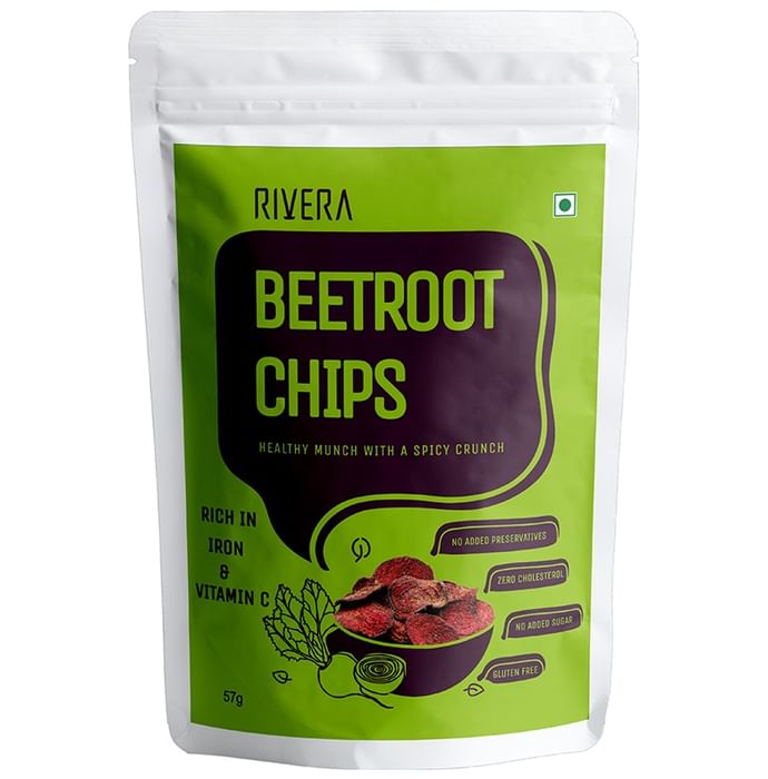 Rivera Beetroot Chips Rivera Beetroot Chips is ready to eat savoury made from real beetroots. It is rich in iron, and vitamin C. Beetroots are naturally packed with essential vitamins and nutrients. It helps improve the blood flow in the frontal lobe of your brain and may reduce blood pressure levels. It has a high content of inorganic nitrates, which help provide you with the necessary nutrients required by your body. It is high in iron, suitable for athletes, and low in calories, so it can be added to your weight loss diet.