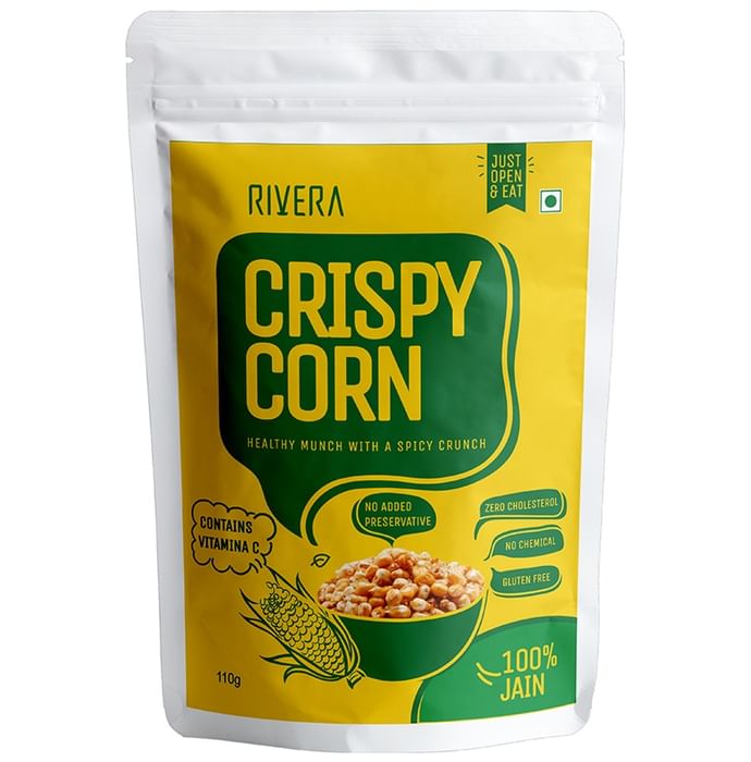 Rivera Crispy Corn Jain Rivera Crispy Corn Jain is ready to eat savoury made from natural sweet corn and is onion and garlic free, making it a 100% Jain food. Sweet corns are the only whole grains with ten times more vitamins than any other grain. It keeps your heart healthy. It is packed with essential vitamins and potassium, maintaining healthy blood pressure. It is also an antioxidant, hence helping against any neuro disease. High in fibre which helps in weight management.
