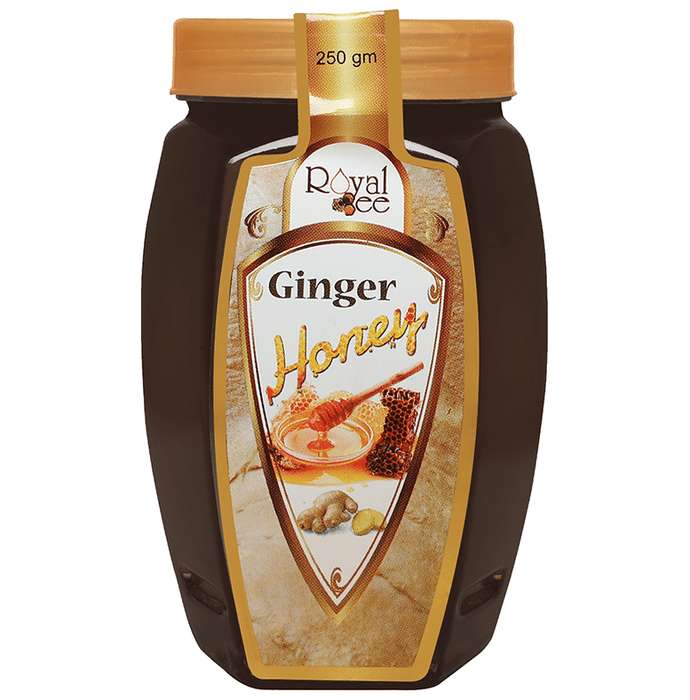 Royal Bee Ginger Honey is made from pure nectar from the bees with ginger extract, which can be a natural cough suppressant. Ginger can help improve metabolism and boost energy levels. Ginger honey may also boost immunity and improve mood. | Key Ingredients: Honey Ginger | Key Benefits: Ginger honey can relieve cough and cold It may help reduce pain It can support heart health It may strengthen the immune system It can help alleviate indigestion It may ease nausea and morning sickness | Directions For Use: Take 1-2 spoonfuls with bread, roti, milk, or directly as required It can be had with bread toast for breakfast | Safety Information: Store at room temperature Store in a cool and dry place Keep out of reach of children
