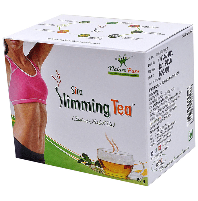 Sira Slimming Herbal Tea is a dietary supplement that helps in natural weight loss. It protects skin against free radicals and and strenghtens energy. | Key Ingredients: Herbal ingredients | Key Benefits: It helps in reducing weight gradually and naturally It also prevent weight gain from current level It also posses anti-constipation function and keep digestive healthy It posses antioxidants that improves skin and prevents formation of free radicals It relaxes stomach and prevents gastric problems It make you feel light and energetic throughout the day | Directions For Use: Drink Sira Slimming Tea after 30 min.of lunch and dinner regularly To prepare Sira Slimming Tea take 1 tea bag dip in 300 ml of boiled water for 8 to 10 min Drink like normal tea | Safety Information: Donâ€t re-use the tea bag A dietary nutritional supplement not for medicinal use Read the label carefully before use Keep out of the reach of children Should be protected from direct light