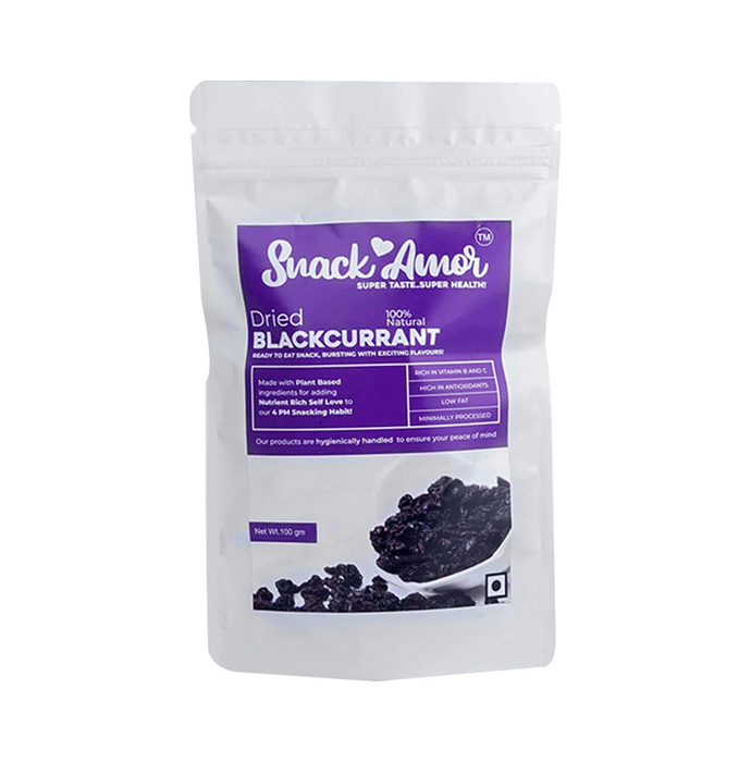 Snack Amor Dried Greek Blackcurrants has many health benefits such as enhancing vision and improving blood flow in the body. It is used to maintain a healthy gut. It has anti inflammatory and anti microbial properties. It also helps in relieving stiffness in the body. | Key Ingredients: Dried Blackcurrants Sunflower Oil | Key Benefits: It helps improve blood flow in the body It is used to enhance vision It is helpful in maintaining a healthy gut It ensures proper functioning of the kidney Warranty: 9 months from date of packing | Directions For Use: Use as directed on the label. | Safety Information: Read the label carefully before use Store in a cool dry place away from direct sunlight Keep out of reach of the children