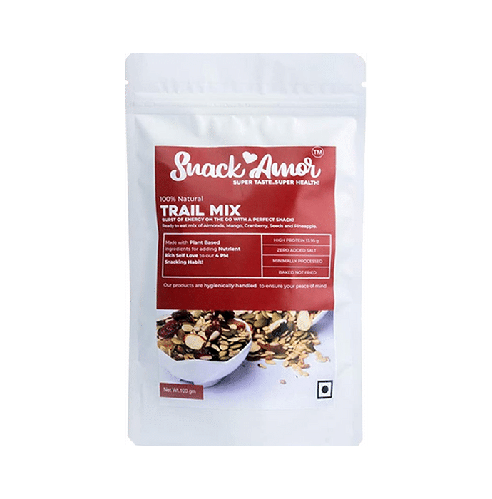 Snack Amor Trail Mix Snack Amor Trail Mix simply nuts and fruits and nothing else. Time to be happy, lovely and healthy. Throw it in your yoghurt or curd, toss it with your leafy salad, enhance the taste and nutritional strength of your breakfast cereal or oats, pep up your dessert ice-cream, kheer or custard.