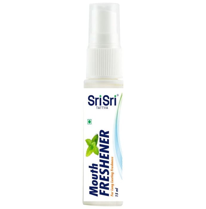 Sri Sri Tattva Mouth Freshner removes bad breath and makes mouth fresh. It is sugar free and gives a blast of freshness in mouth. | Key Ingredients: Sodium saccharin Peppermint Sorbitol Sodium Benzoate Aqua | Key Benefits: Is a sugar-free formulation that keeps breathe fresh for a longer time Fight against the bad breath-causing bacteria Gives a blast of freshness in mouth | Directions for Use: Shake well before use Spray Sri Sri Tattva Mouth Freshener directly into the mouth and experience the fresh and cool breath | Safety Information: Store in a cool, dry and dark place Protect from direct sunlight Read the label carefully before use Do not exceed the recommended dose Keep out of the reach of children