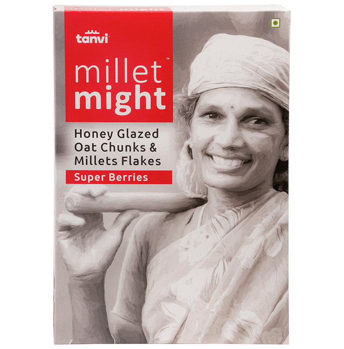 Tanvi Millet Might Glazed Oat Chunks & Millets Flakes Super Berries Tanvi Millet Might Glazed Oat Chunks and Millet Flakes is a wholesome breakfast that is made with a variety of healthy ingredients like rolled oats, millets, honey and a variety of berries. It is 100% natural and made without artificial ingredients.