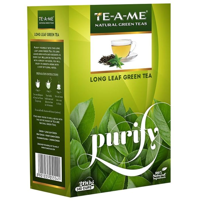 TE-A-ME Purify Long Leaf Green Tea TE-A-ME Long Leaf Green Tea contains Green Tea which supports cardiovascular health and is significant for the daily weight loss regime as it decreases body fat. Green Tea is also known to improve the metabolic activity of the body and reduces the risk of cardiovascular diseases.