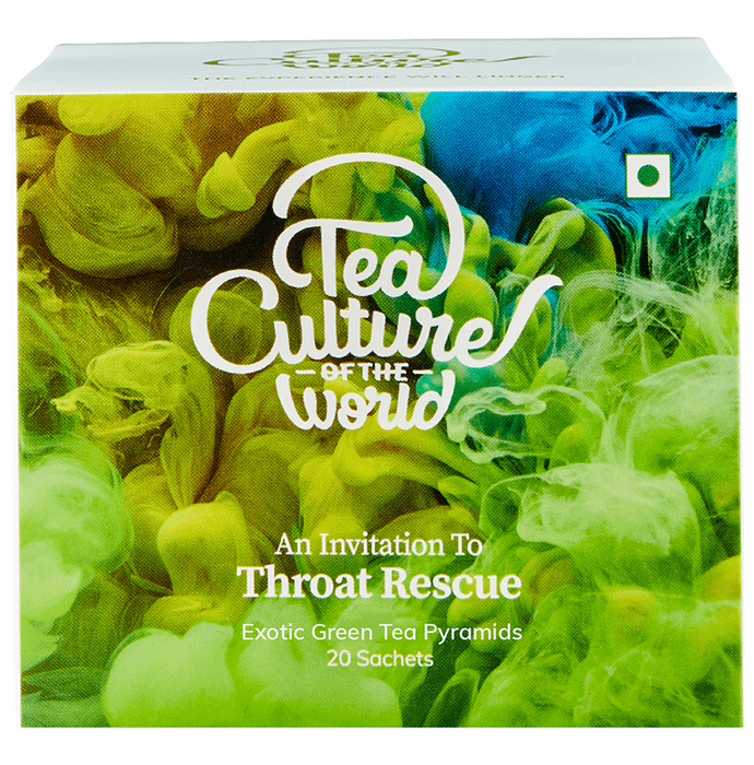 Tea Culture of the World Throat Rescue Tea Bag (2.5gm Each) Tea Culture of the World Throat Rescue Tea Bag is a blend of green tea, herbs and spices that soothes the pain and discomfort of sore throat. It can reduce inflammation, alleviate infection and promote good health while providing comfort to the body and throat by providing warmth in case of seasonal flu, cold and cough.