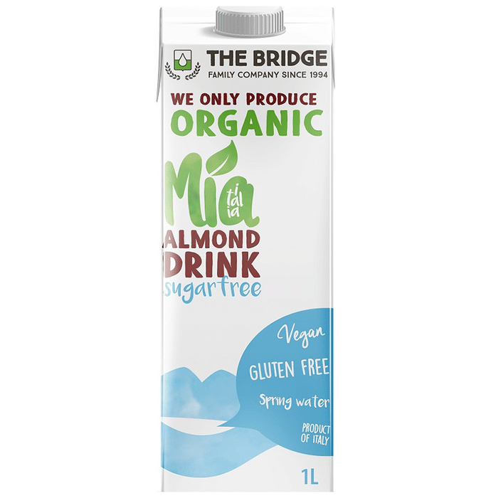 The Bridge Organic Gluten-free Almond Drink Sugar-free This premium organic almond-based drink serves as a healthy and delicious substitute for dairy milk. The added nutritional properties provide a wholesome and energizing start to your day. | Key Ingredients: Springwater Italian almond paste (3%) Carob seeds flour | Key Benefits: This organic drink is a substitute for dairy milk It is completely vegan Contains no gluten or sugar Suitable for people with lactose intolerance | Directions For Use: Consume as directed on the label or as advised by your healthcare provider. | Safety Information: Read the label carefully before use Store in a cool and dry place away from direct sunlight Keep out of reach of children