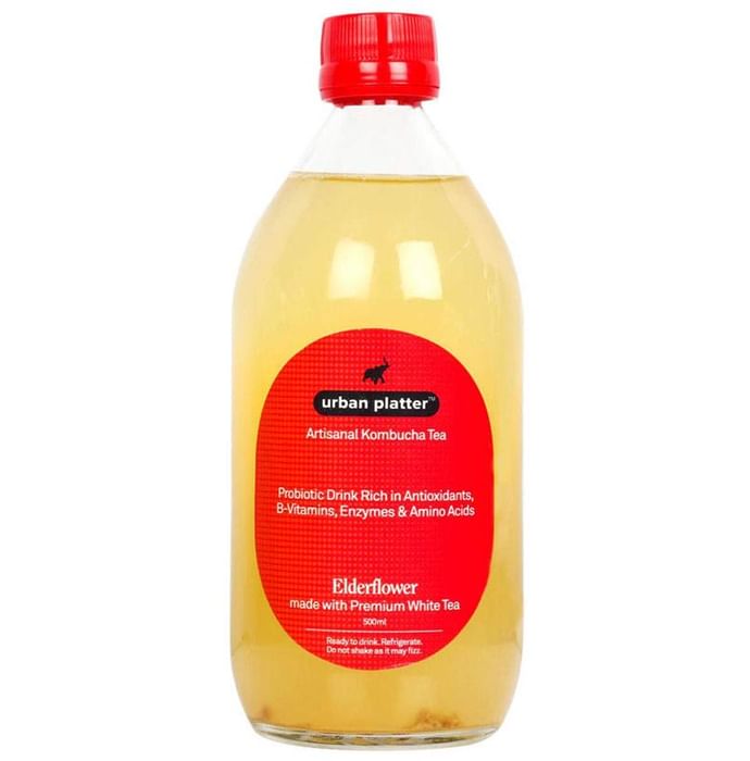 Urban Platter Artisanal Kombucha Tea (500ml Each) Elderflower Urban Platter Artisanal Kombucha Tea (500ml Each) is made as a natural bubbly beverage with an abundance of probiotics. It is brewed using tea and sugar through a fermentation process that requires a symbiotic culture of bacteria and yeast. It is rich in antioxidants, B-Vitamins and Amino Acids. In addition to this, it comes in seven different flavours namely, Variety, Lavender, Hibiscus Lime, Jun Ginger Cranberry, Smoky Oolong, Chamomile, and Elderflower.
