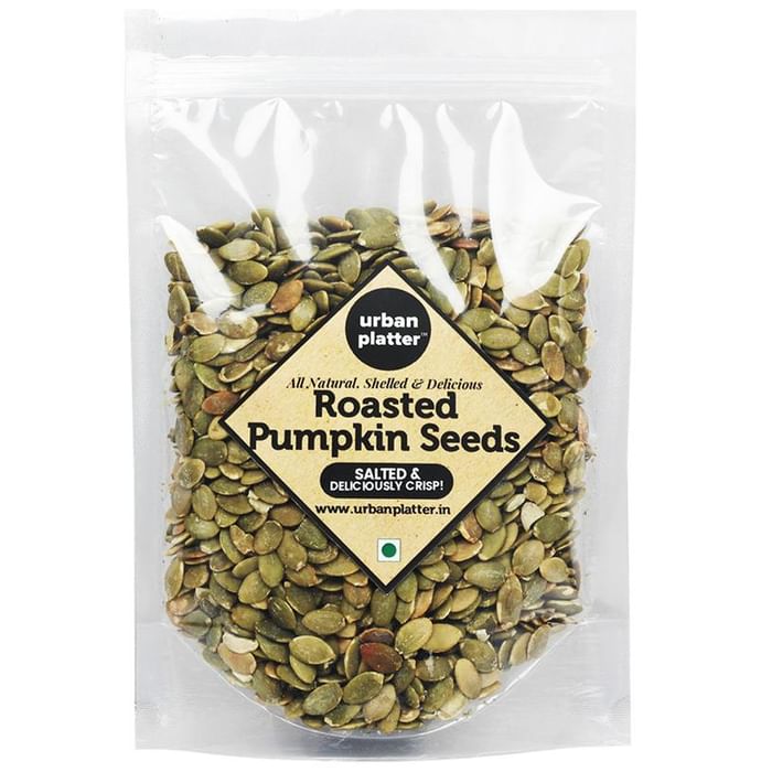 Urban Platter Pumpkin Gluten Free Premium Roasted & Salted Seeds Urban Platter Pumpkin Gluten Free Seeds are a rich source of healthy fats, fibres and antioxidants, which helps improve heart health. Excellent source of B vitamins, magnesium, iron and protein and helps reduce cholesterol and blood pressure. Urban Platter Pumpkin Gluten Free Seeds are free of gluten as suggested in the name.