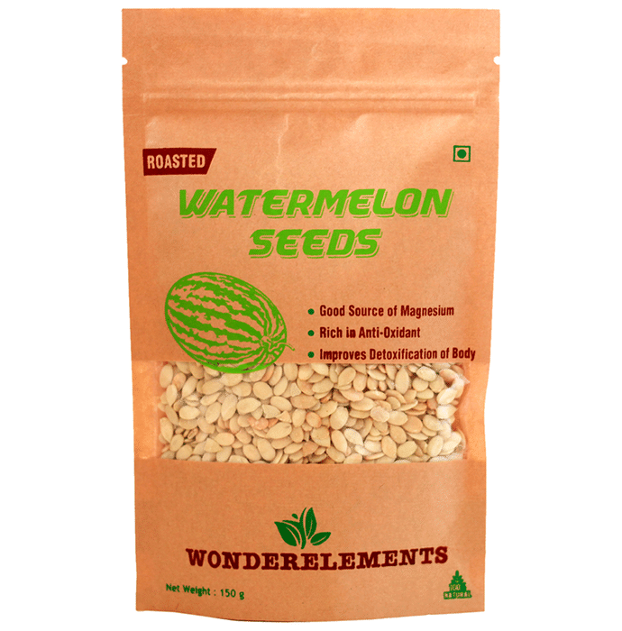 Wonderelements Roasted Watermelon Seeds Wonderelements Roasted Watermelon Seeds are naturally obtained nutritional dietary supplement. The watermelon seeds are roasted to make them palatable. These seeds are an excellent source of magnesium and amino acids. It promotes a healthy nerve system, digestive system, hair and skin.
