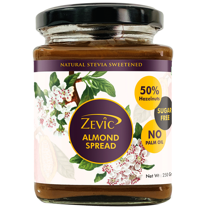 Zevic Almond Spread is a blend of Turkish almonds and Belgian chocolate. It has a nutty and creamy flavour and is sweetened with zero-calorie stevia. It satisfies all the cravings in the healthiest way possible. Zevic Almond Spread is the ideal product for those on a keto, paleo, etc. | Key Ingredients: Almonds Cocoa powder Milk solids | Key Benefits: It has a nutty and creamy texture It is free from sugar and palm oil It is ideal for chocolate lovers and sugar-avoiders It works as a non-caloric sugar substitute while cooking and baking | Directions For Use: Use as directed. | Safety Information: Read the label carefully before use Store in a cool and dry place away from direct sunlight Keep out of reach of the children