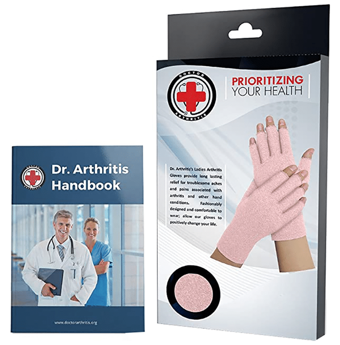 Dr. Arthritis 3/4 Compression Gloves for Ladies & Doctor Written Handbook Small Pink Dr. Arthritis Ladies Arthritis Compression Gloves are tailor-made to ensure a proper fit for ladies. They are extremely effective in managing hand pain and swelling. These gloves work largely on the principle of compression, which reduces swelling and has a remarkable effect on symptom control. It may provide relief in conditions such as osteoarthritis, rheumatoid arthritis and psoriatic arthritis.