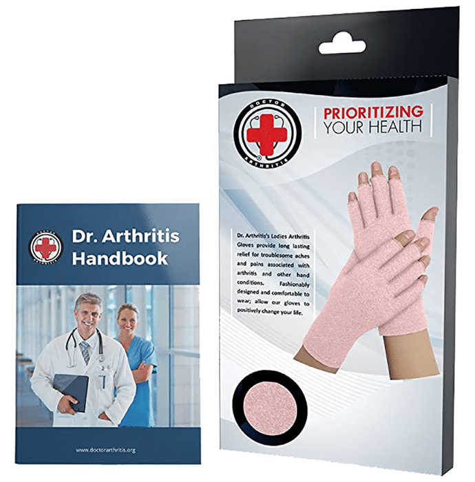 Dr. Arthritis Ladies Arthritis Compression Gloves are tailor-made to ensure a proper fit for ladies. They are extremely effective in managing hand pain and swelling. These gloves work largely on the principle of compression, which reduces swelling and has a remarkable effect on symptom control. It may provide relief in conditions such as osteoarthritis, rheumatoid arthritis and psoriatic arthritis. | Uses: Helps in supporting wrists May relieve pain from osteoarthritis, rheumatoid arthritis and psoriatic arthritis Stabilizes movement and hence helps heal soft tissue damage | Product Specifications and Features: These compression gloves are developed by healthcare professionals who specialize in remedying conditions such as arthritis These gloves are tailor-made to ensure a proper fit for women This product also includes a handbook that may help you know more about your ailments and treat them better It is built from a compressive copper infused material that has a blend of copper nylon and spandex that optimize comfort allowing all-day wear. Although thin, the material is strong and extremely durable | Directions For Use: Use as directed on the label or as advised by your healthcare provider/ physician. | Safety Information: Read the label carefully before use Keep out of reach of children