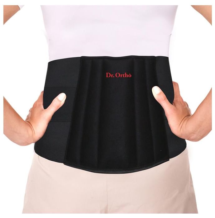 Dr Ortho Lumbo Sacral Support Belt Small is a lower back support belt made with soft cotton material. This orthopaedic belt for back pain for females and males can be used during brisk walking and daily routines. The user gets comfort and stability for the lower back with this Lumbo Sacral Back Support. Along with hypoallergenic soft cotton, it has double adjustable straps. This lumbo sacral belt uses double adjustable straps to be comfortable for the user on the lower waist as per their needs. The material is highly breathable and has a long life. Plus, Dr. ortho's lower back support belt is helpful to give optimal compression and flexibility for the lower back during heavy weight lifting and challenging training sessions. Hence, the back stays comfortable, and there is no additional strain on it. This lumbosacral back support is designed keeping in mind the need for extra stability of the back and efficient support for the abdomen and lower back. A lower back support belt can be used every day if needed. However, it is advisable not to use it 24/7 to avoid dependency on the back. Dr. ortho's lumbo sacral belt is light and easy to put on the lower back and remove comfortably, so the back is well supported while it is on the back and relaxed after usage. | Uses: It provides lower back support to manage back pain. | Product Specifications and Features: It is made up of breathable cotton fabric It helps provide comfort and stability to the lower back It can be used while performing daily activities It has double adjustable straps to adjust accordingly | Directions For Use: As mentioned on the product label or directed by the healthcare professional. | Safety Information: Read the label carefully before use Store in a cool and dry place, away from sunlight Keep out of reach of children