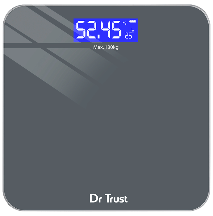 Dr Trust USA Electronic Platinum Recharge Digital Personal Weighing Scale 501 Dr Trust USA Electronic Platinum Rechargeable Digital Personal Weighing Scale with Temperature Display is a super-strong weighing scale with accurate readings with blue LED backlight, digital display and overload indication and high precision strain gauge sensors and is capable of measuring up to 180 kg. The measuring scale has a maximum capacity of 400lb/ 180kgs.