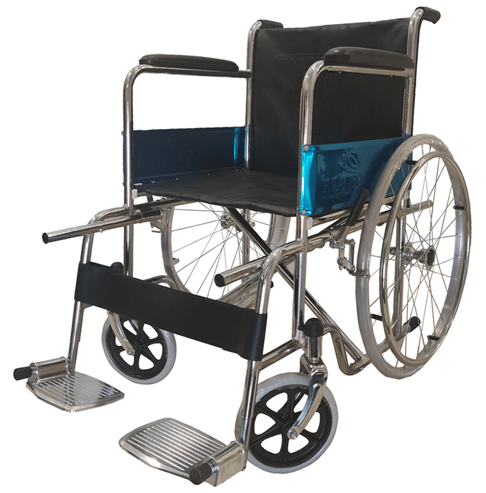 Easy Care EC809LI Foldable Steel Wheelchair is designed to provide increased mobility and independence for the user and their caretaker, allowing them to take part in everyday activities, despite having reduced mobility. As well as helping you carry out daily tasks with ease, a wheelchair offers many social and mental health benefits. | Uses: It is used to offer mobility to people having restricted or reduced mobility on their own. | Product Specifications and Features: It is much lighter than regular wheelchairs, making it a travel-friendly choice Detachable desk arms and premium swing-away leg rests provide customizable support Durable nylon upholstery is easy to clean and offers prolonged comfort It can be folded compactly making it easy to store The frame is made with steel and is durable The maximum load capacity is 100 kgs | Directions For Use: Use as directed on the instruction manual. | Safety Information: Read the user manual carefully before use Keep out of reach of children Store in a cool and dry place