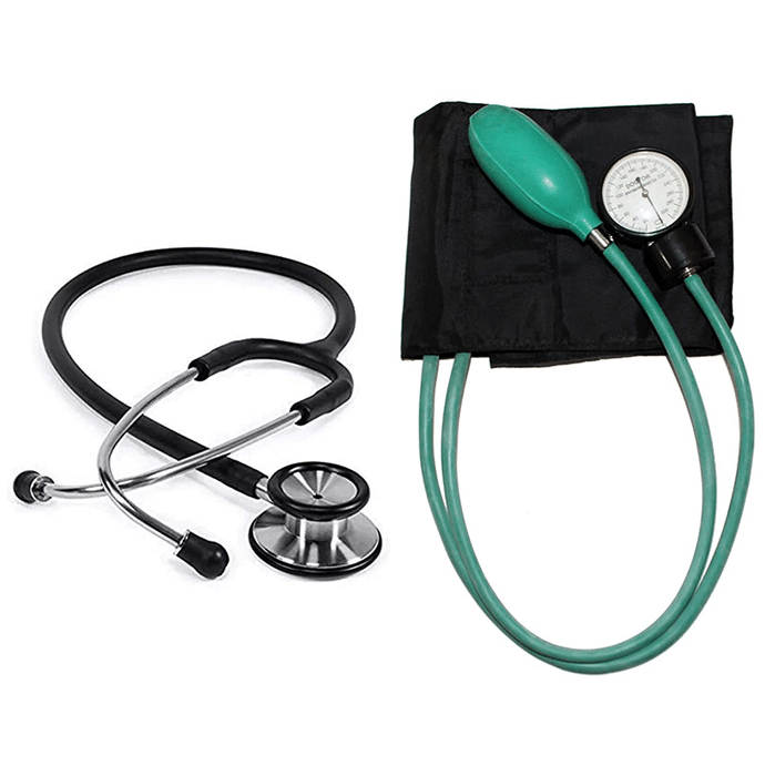 Fidelis Healthcare Aneroid Blood Pressure Monitor With Sthethoscope is intended to detect an individual's blood pressure level. The machine includes quick delation and a soft bulb for fast inflation. It has a chrome-plated dial and an inflation bulb that is easy to squeeze. It is simple to operate and can be used at home and by professionals. | Uses: Fidelis Healthcare Aneroid Blood Pressure Monitor is used to detect blood pressure levels. | Product Specification and Features: Fidelis Healthcare Aneroid Blood Pressure Monitor can be used by doctors, nurses and other medical professionals to track one's blood pressure levels It comes with a range of 0-30 mmHg and consists of PVC/latex bulb that can be operated single-handedly It is light in weight and can be travelled anywhere due to its compact size | Directions For Use: Use as directed on the label or as advised by the physician. | Safety Information: Read the label carefully before use Store in a cool and dry place away from direct sunlight Keep out of reach of children