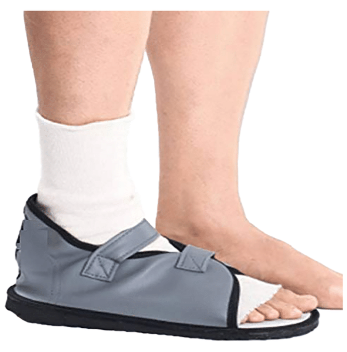 Fidelis Healthcare Cast Shoes Large Grey A foot cast made of plaster might be worn instead of a typical shoe when a patient is wearing a foot cast. It lessens the impact on the damaged foot and prevents excessive cast wear and tear. It provides orthopaedic support and foot stability. It is available in small, medium, large, XL and XXL sizes. | Uses: Fidelis Healthcare Cast Shoes provide stability and support to the injured foot. | Product Specification and Features: Fidelis Healthcare Cast Shoes are beneficial for patients with foot cast and helps to provide support and stability to the foot It is light in weight, offers optimal support for the foot and is comfortable to wear on the foot cast It is made from soft fabric which does not put pressure on the foot or foot cast and prevents wear or tear of the cast | Directions For Use: Use as directed on the label or as advised by the physician | Safety Information: Read the label carefully before use Store in a cool and dry place away from direct sunlight Keep out of reach of children
