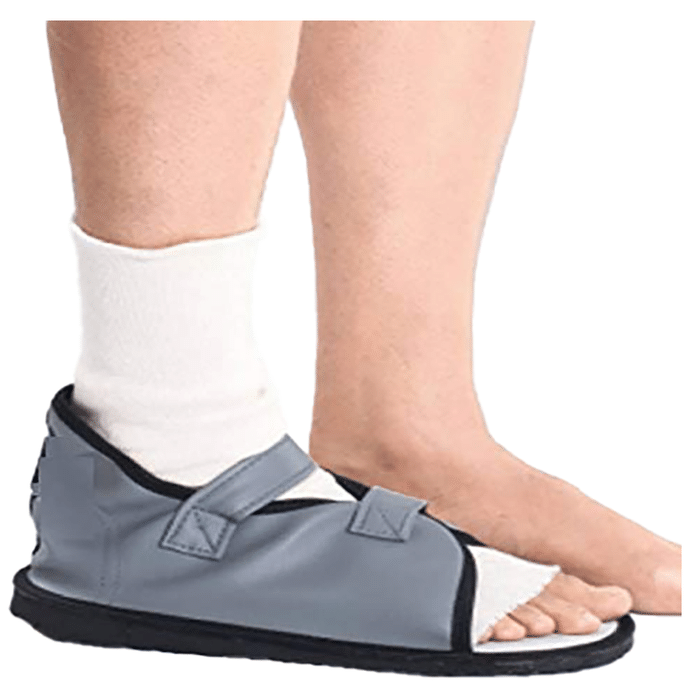 Fidelis Healthcare Cast Shoes XXL Grey A foot cast made of plaster might be worn instead of a typical shoe when a patient is wearing a foot cast. It lessens the impact on the damaged foot and prevents excessive cast wear and tear. It provides orthopaedic support and foot stability. It is available in small, medium, large, XL and XXL sizes. | Uses: Fidelis Healthcare Cast Shoes provide stability and support to the injured foot. | Product Specification and Features: Fidelis Healthcare Cast Shoes are beneficial for patients with foot cast and helps to provide support and stability to the foot It is light in weight, offers optimal support for the foot and is comfortable to wear on the foot cast It is made from soft fabric which does not put pressure on the foot or foot cast and prevents wear or tear of the cast | Directions For Use: Use as directed on the label or as advised by the physician | Safety Information: Read the label carefully before use Store in a cool and dry place away from direct sunlight Keep out of reach of children