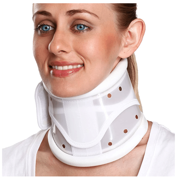 Fidelis Healthcare Cervical Hard Collar Adjustable XXL White Fidelis Healthcare Cervical Hard Collar Adjustable XXL White is used to support the neck when it is in flexion, extension, or hyperextension. It works well to help in the treatment of cervical spondylitis and cervical disc disease and aids in the cervical region's postoperative stability. It ensures airflow through the eyelet and is cosy and lightweight.