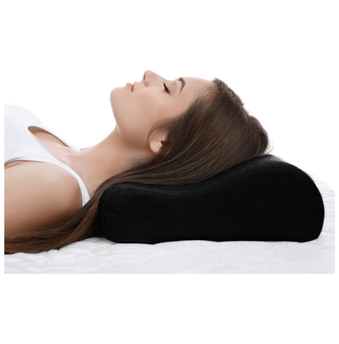 Fidelis Healthcare Cervical Pillow Universal Black is comprised of premium foam, which contributes to the outstanding support it offers. Its soft material improves neck relaxation and lessens back, neck and heart tension. It minimises stiffness and neck discomfort while providing support for the cervical spine. | Uses: Fidelis Healthcare Cervical Pillow is beneficial for providing support for the neck and improving sleeping posture. | Product Specification and Features: Fidelis Healthcare Cervical Pillow offers support, particularly for cardiac stress and neck and back pain caused by spondylosis It aids in encouraging the free flow of air via the nose and helps in readjusting wrong sleeping positions to provide restful sleep The pillow's modest depression in the centre allows for complete neck rest and maintains the natural arch of the neck | Directions For Use: Use as directed on the label or as advised by the physician | Safety Information: Read the label carefully before use Store in a cool and dry place away from direct sunlight Keep out of reach of children