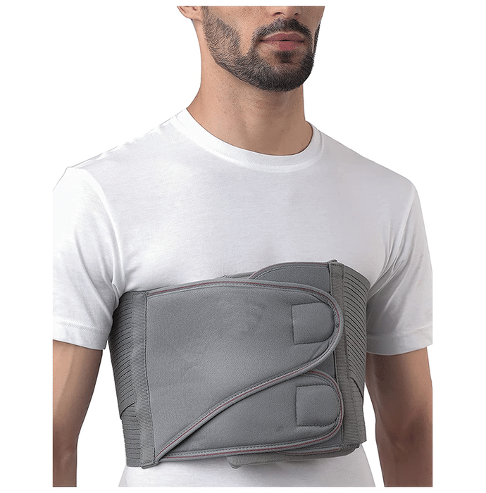 Fidelis Healthcare Chest Binder Medium Grey relieves pain in cases of muscle tear, strain, or soft tissue injury by compressing the thorax (chest) and rib cage. It helps to stabilise sternum fractures (breastbone). It is available in small, medium, large, XL and XXL sizes. | Uses: Fidelis Healthcare Chest Binder is used to support the chest after chest injury or surgery. | Product Specification and Features: Fidelis Healthcare Chest Binder elastic band is beneficial for providing support to the injured chest and helps in keeping it immobilised It has a strong elastic band that offers a good grip and aids in pressure distribution It alleviates post-operative pain and discomfort while also facilitating phlegm expulsion following cardiothoracic surgery | Directions For Use: Use as directed on the label or as advised by the physician | Safety Information: Read the label carefully before use Store in a cool and dry place away from direct sunlight Keep out of reach of children