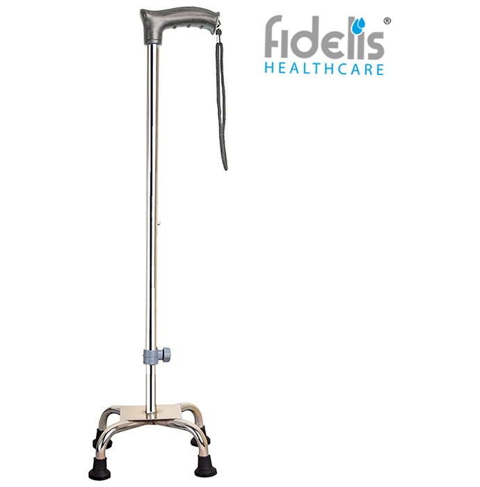 Fidelis Healthcare Mild Steel Adjustable Walking Stick 4 Leg with Metal Base Grey Fidelis Healthcare Mild Steel Adjustable Walking Stick 3 Leg with Metal Base benefits elderly patients and those with mobility issues. Its high-performance pods offer superior traction, durability, and resilience. The handle improves grip, increases comfort, and uces impact and shock transfer to the user's hand.