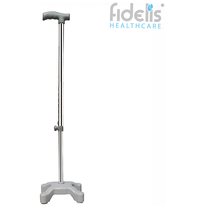 Fidelis Healthcare Mild Steel Adjustable Walking Stick 4 Leg with Plastic Base Grey Fidelis Healthcare Mild Steel Adjustable Walking Stick 3 Leg with Metal Base benefits elderly patients and those with mobility issues. Its high-performance pods offer superior traction, durability, and resilience. The handle improves grip, increases comfort, and uces impact and shock transfer to the user's hand.