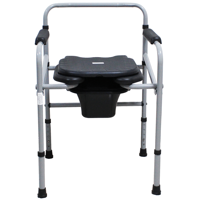 Fidelis Healthcare Portable Height Adjustable Commode Chair & Bathing Chair with Armrest and Backrest with Pot U Shape is a one-of-a-kind portable toilet that may be placed at the bedside of a bedridden patient. The waste may be taken out of the container and dumped. It has a sturdy and long-lasting design that disabled people may readily use. | Uses: When a patient is unable to access the washroom, a commode chair can be utilised at home. | Product Specification and Features: Fidelis healthcare chair with pot is constructed of high-quality materials The rubber tips on the legs are slip-resistant hence providing extra safety Ideal for aged people or people who have difficulty in standing for long periods of time For the user, it is a pleasant and safe chair The lightweight further makes it extremely easy to carry around during travel | Directions For Use: Assist the user in settling into a comfortable seating position. After you've finished, take out the waste pan and wash it in the toilet. | Safety Information: Read the user manual carefully before use Keep the chair clean when not in use to avoid any germ activity Fold it when not in use Make sure the commode chair is not damaged in any way Store in a cool and dry place Keep away from children