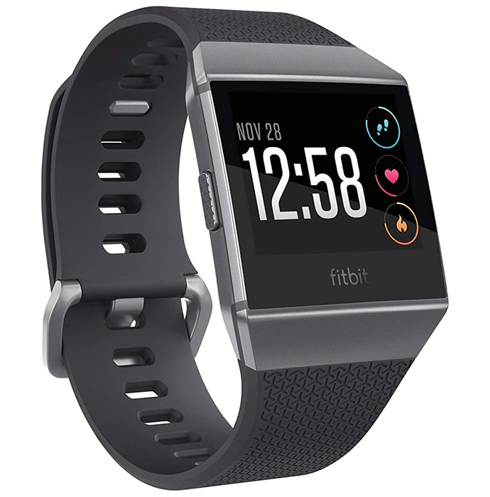 Fitbit Ionic Smart Watch Charcoal-Smoke Grey Fitbit Ionic Smart Watch is a GPS smartwatch packed with multiple features that help one stay in shape, such as fitness guidance, 24/7 heart rate, health and wellness insights, on-screen workouts, phone-free music, and sleep tracker.