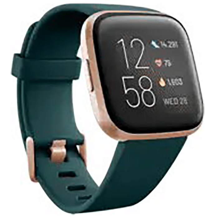 Fitbit Versa 2 Smart Watch Emerald-Copper Rose Fitbit Versa 2 Smart Watch is designed to help keep an eye on your heart rate, sleeping and breathing patterns. With the built-in Amazon Alexa, you can get quick updates on news and weather. It can also be trusted to control home devices and set up reminders.