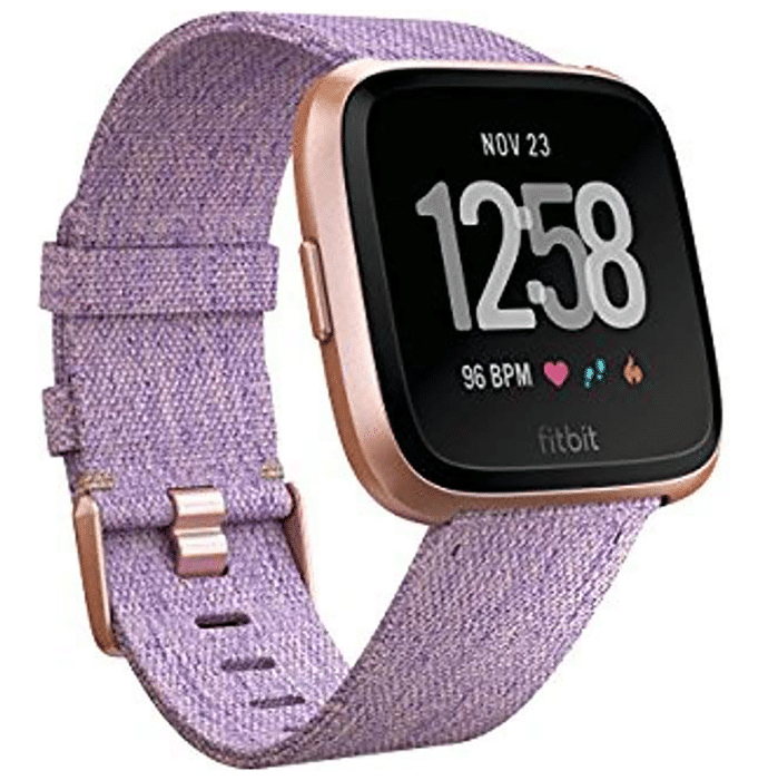 Fitbit Versa Smart Watch Lavender Woven Special Edition Fitbit Versa Smart Watch is a heart rate and fitness tracker for every day that helps you build healthy habits. This encouraging companion motivates you to reach your weight and fitness goals and even enjoy the journey with 24/7 heart rate, workout features, calorie burn tracking, goal celebrations, sleep stages and up to 5 days of battery life.