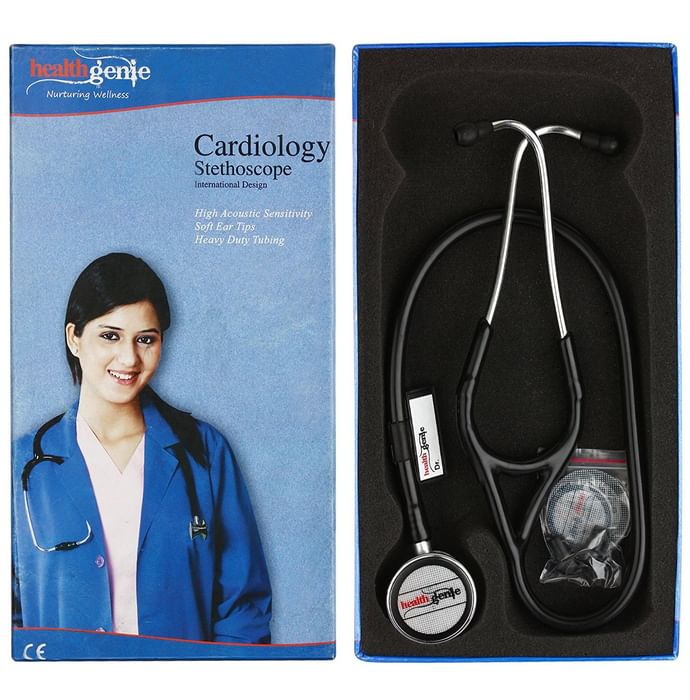 Healthgenie HG-402B Stainless Steel Cardiology Stethoscope Healthgenie HG-402B Stainless Steel Stethoscope is used in cardiology/pulmonary examination purpose stethoscope. Its stainless steel make up gives it classic and sleek look and the conical shaped chest piece provides clarity and accuracy in auscultation of heart, lungs, etc.