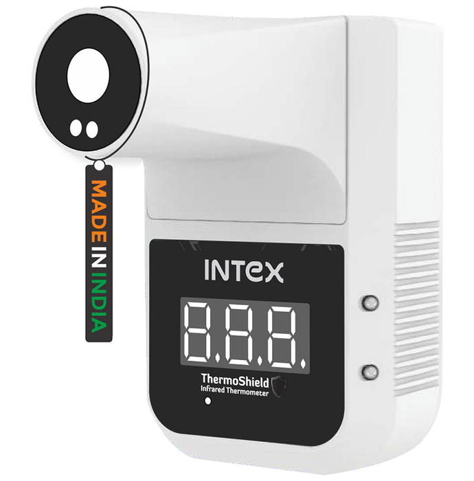 Intex Thermo Shield Wall Mount Automatic Digital Thermal Scanner & Infra Red Thermometer Avoid cross-infection between multiple people during testing. If the temperature exceeds normal limits the non-contact digital thermometer will display a red light and make a sound that will let you know that person has a fever, otherwise it will only show a green light and its temperature. | Uses: It is used to measure the human's body temperature from a certain distance without coming in direct contact. | Product Specification and Features: Good quality infrared sensor ensures superior and fast (German Sensor) performance It is very easy to mount on the wall or other surfaces, like glass or wood It can also be used with a tripod mount | Directions For Use: Read the manual or as directed by the doctor. Safety Information: Read the label carefully before use Store in a cool and dry place away from direct sunlight Keep out of reach of children