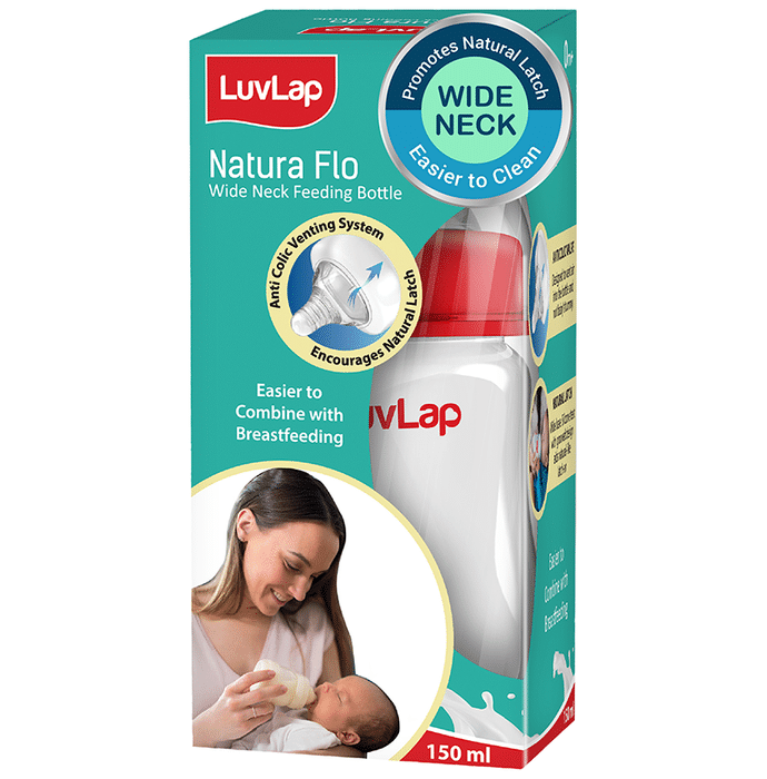 LuvLap 0M+ Natura Flo Wide Neck Feeding Bottle Plain LuvLap 3M+ Natura Flo Wide Neck Feeding Bottle comes with a medium-flow teat designed to feed the baby with utmost care and gentleness. The bottle bears a wide neck to provide the experience of hassle-free feeding.