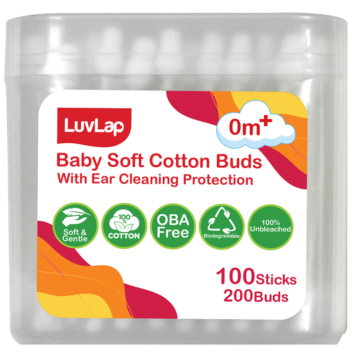 LuvLap Baby Soft Cotton Buds 0m+ LuvLap Baby Soft Cotton Buds 0m+ these premium cotton swabs or cotton buds are made with pure, soft cotton. These are quite gentle for your baby's delicate, new ears. These eco-friendly cotton buds can be effectively used for ear-cleaning.