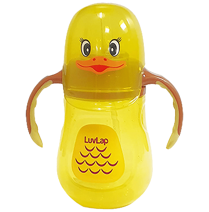 LuvLap Naughty Duck Straw Cup LuvLap Straw Cup is a gorgeous, tiny cup for your baby's safe and beautiful drinking experience. It comes with a weighted straw and an easy-to-grip handle. This cup ensures zero spilling. This cute cup is available in different variants: wise owl, clever frog, naughty duck, and little dolphin.