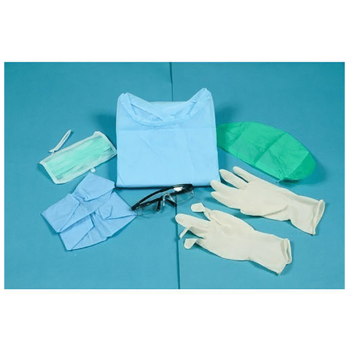 Medisafe HIV Kit Sterile with Medical Pouch is specially designed to offer protection to healthcare professionals engaged in the treatment and management of HIV patients. It may also act as a foolproof product for home isolation etc. It contains items that include a face mask, gown, head cap, disposable gloves, shoe cover, goggles and a waste carry bag, making it ideal for doctors and healthcare experts. | Uses: It is specially designed for those working with HIV+ individuals. It is helpful in preventing against viral or bacterial transmission in spaces like hospitals, labs etc. | Product Specification and Features: Made from optimum-grade material Impermeable Made according to strict safety standards | Directions For Use: Use as directed on the label or as advised by your healthcare provider | Safety Information: Read the label carefully before use Store in a cool and dry place away from direct sunlight Keep out of reach of children