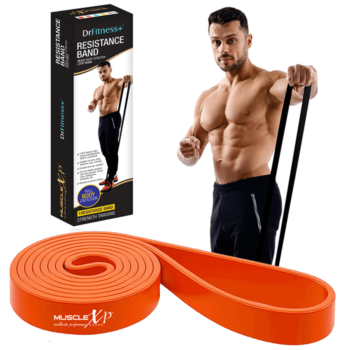 MuscleXP DrFitness+Resistance Heavy Duty Stretch Loop Band Orange MuscleXP DrFitness+Resistance Heavy Duty Stretch Loop Blue This resistance band is flexible and strong as it is made of high-grade latex. It provides you with higher durability and elasticity. It also helps to improve your strength, size, and muscle mobility. It is highly portable and has minimal storage space which easily fits into a gym bag or a locker. Its high-quality design made from durable and thick rubber gives you support for wide range of exercises and tranings.