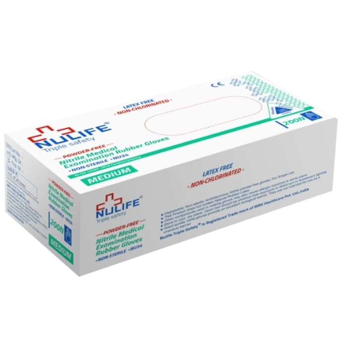 Nulife Triple Safety Powder Free Nitrile Medical Examination Gloves Medium Nulife Triple Safety Powder Free Nitrile Medical Examination Gloves It is a pack of 30 nitrile examination gloves that offer high protection against certain chemicals, biohazards such as viruses and bacteria, bodily fluids, abrasive materials, etc. Nitrile examination gloves eliminate the risk of latex allergy and reactions. It comes in three different sizes-small, medium and large.