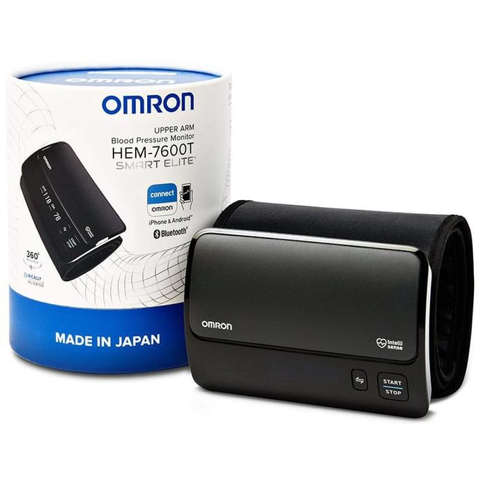 Omron HEM 7600T Smart Elite+ Upper Arm Blood Pressure Monitor makes it easy to get an accurate and consistent picture of your heart's health wherever you are. It is fully automatic and personalised inflation for maximum comfort and provides a quick deflation release valve for speedy measurement. | Uses Monitors the rate of blood pressure and irregular heartbeat. | Product Specifications and Features Pulse rate indicator: Yes Multiple user memories: No Large digit display: Yes Data averaging function: Yes Body movement detector: Yes Memory download capability: Yes Irregular-heartbeat detector: Yes Risk-category indicator: Yes If there is any irregular heartbeat detected more than twice during measurement, there a symbol appears on display with the measurement result Retakes the measurement when an error is detected due to body movement It is made in Japan and comes with 360 accuracy IntelliWrap cuff | Directions for Use Wrap it on and press the button Start controlling the blood pressure | Safety Information Keep out of reach of the children Read the label carefully before use Protect from physical damage | Warranty Info: Five years.