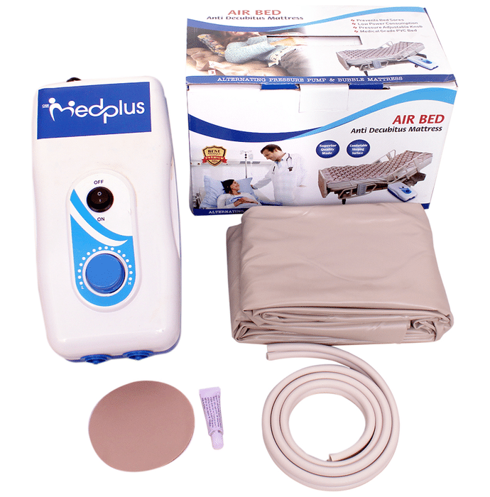 Osr Medplus Air Pump and Air Bubble Mattress Blue can provide bed-like comfort and has a luxury support system. | Uses: It may relieve body soreness. | Product Specifications and Features: Warranty: 1 year Material: Rubber Capacity: 250 gm Country of origin: India Dispatch: 2-3 days easy returns available In case of any issue | Directions For Use: As directed on the product label. | Safety Information: Read the label carefully before use Store in a cool and dry place, away from sunlight Keep out of reach of children Discontinue use and seek the guidance of a qualified doctor in case of impaired sensation or if the pain increases or persists Misuse or improper use may lead to adverse effects and decreased effectiveness