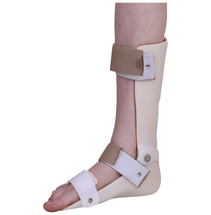 Salo Orthotics Articulated Ankle Foot Orthosis 9inch Right helps in the prevention and correction of foot drop and peripheral nerve paralysis. It has a polypropylene dorsal shell with a leaf spring motion to stop plantar flexion and raise the foot. It supports the ankle and foot in all types of foot drop situations. It also aids in decreasing the effect of plantar flexion in the early stance. | Uses: It provides support and stabilises ankle and foot. | Product Specification and Features: It manages abnormal motion or severe pronation in the transverse and frontal planes It stabilises the ankle area medially, laterally and reduces either forefoot abduction or adduction Aids in maintaining the foot in the functional and dorsiflexion position | Directions For Use: Use as directed on the label. | Safety Information: Store in a cool and dry place away from direct sunlight Keep out of reach of children Read the label carefully before use