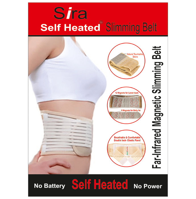 Sira Self Heated Tourmaline Slimming Belt icrease blood flow and help relieve pain associated with joint and back problems. Magnetic heating effect helping to relax muscles and reduces fatigue. | Uses: It increase blood flow, body temperature and burn excess fat. | Product Specifications and Features: It has a high penetrating power and heat, it can burn away excess fat and keep the body healthy High Elastic fiber cloth with vented and breathable elastic side panels Magnetic heating therapy of belt does not require battery charge High elastic fiber cloth, fine texture, soft handle | Directions For Use: Read the user manual carefully | Safety Information: Keep away from moisture or water