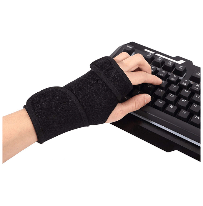 Skudgear Adjustable Wrist Support Brace with Removable Steel Plate it provides stable and strong support to the hand and wrist in various orthopaedic positions. It stabilises the wrist in a dorsi-flexion/functional position while allowing a full range of motion to the fingers and thumb. It compresses and retains body heat to relieve local pain and swelling. The product can be removed to allow for therapy sessions, washing and sanitising. | Uses: It helps provide stable and robust support to the hand and wrist | Product Specifications and Features: It is used for wrist sprains/strains, sports injuries, wrist tenosynovitis, ganglion cysts and other conditions that cause pain and discomfort in the wrist and require light support It provides stable and strong support to the hand and wrist in a variety of orthopaedic positions It stabilises the wrist in a dorsi-flexion/functional position while allowing full range of motion to the fingers and thumb It compresses and retains body heat to relieve local pain and swelling | Directions For Use: Use as directed on the label or as advised by a health care professional | Safety Information: Read the label carefully before use Store in a cool, dry place away from direct sunlight Keep out of reach of the children